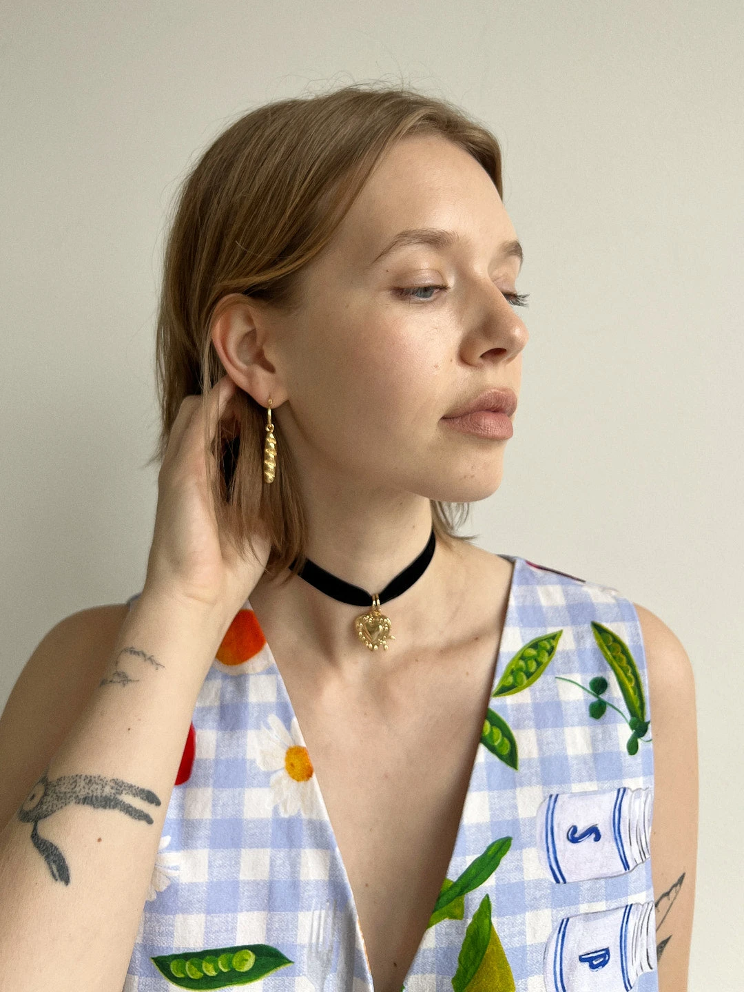 1″ gold plated charms on 0.5″ gold plated hoops with hinge closure.