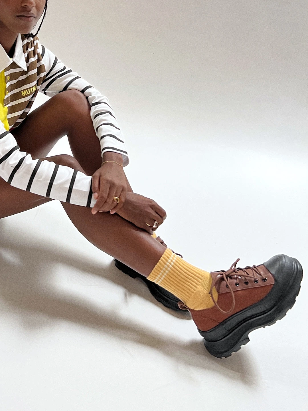 From Uruguay based label Mutma, a hiking-inspired platform sneaker made with a canvas upper and super lightweight rubber sole.