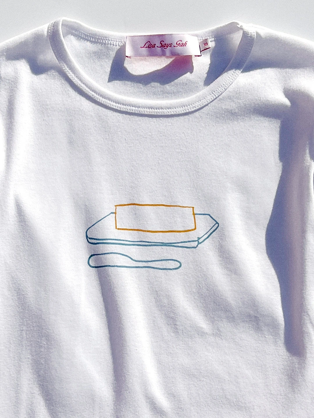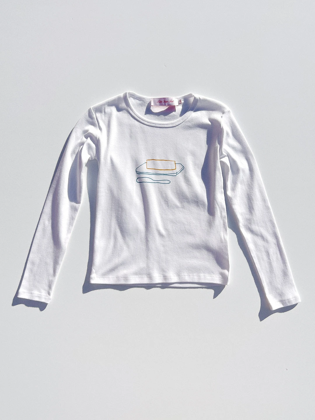 Our classic Dana Long Sleeve tee in our new print featuring a butter dish on the bust.