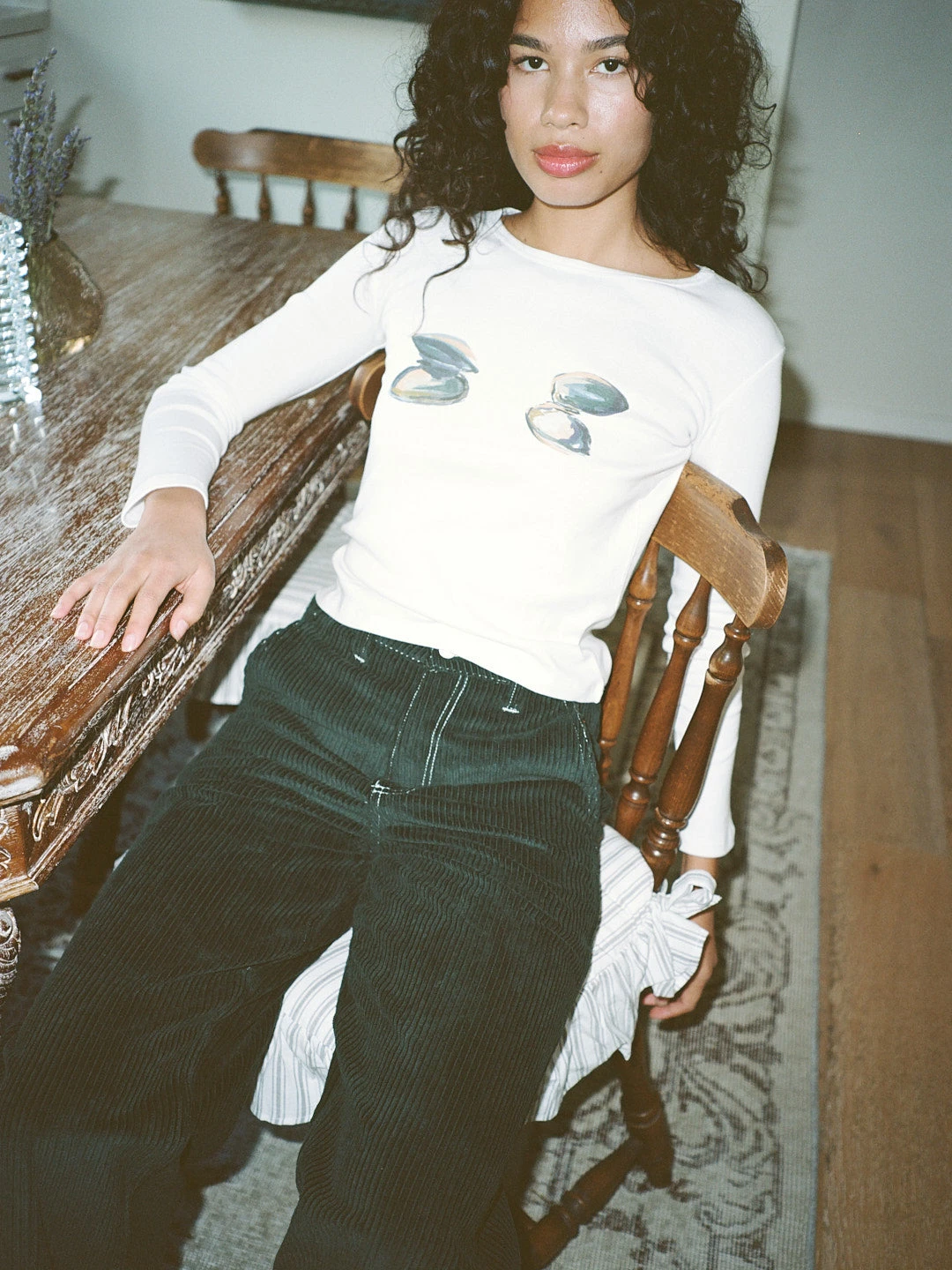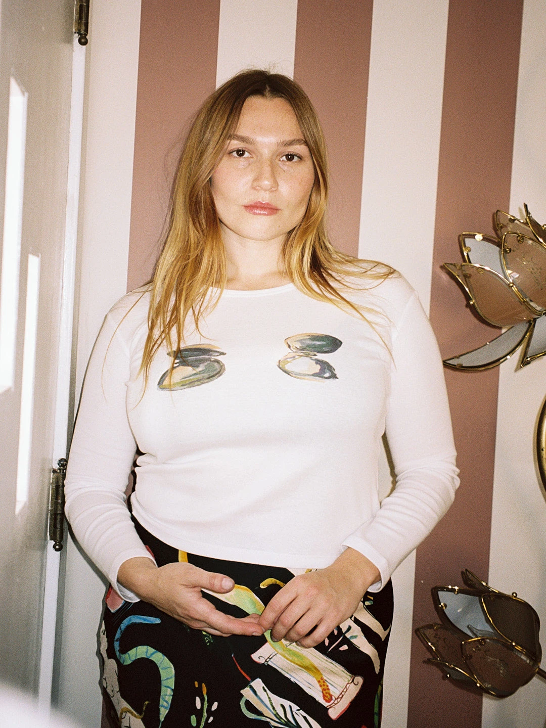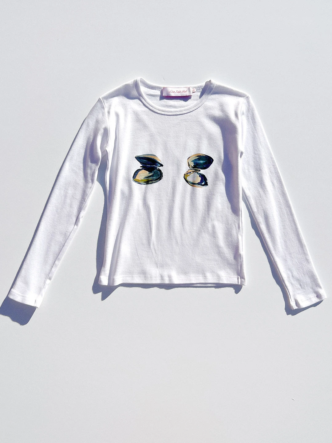 Our classic Dana Long Sleeve tee in our new print featuring clams on the bust.