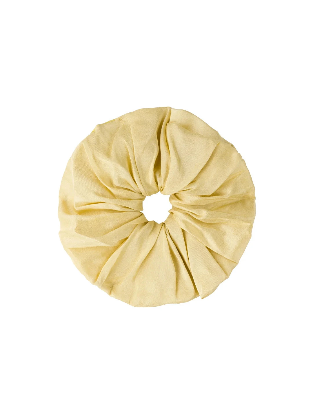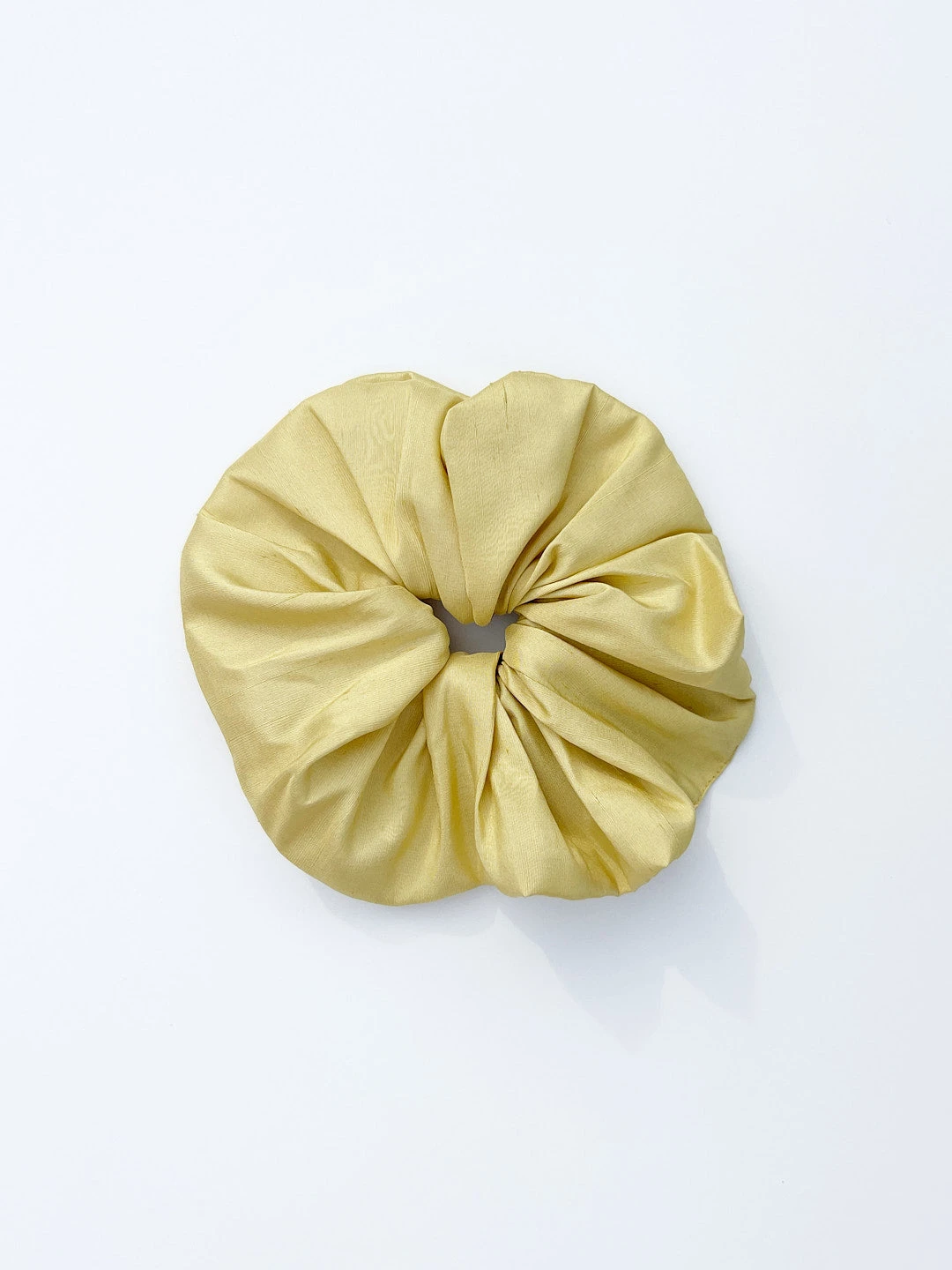 This is the Dupion Scrunchie in a playful shade of yellow! It’s oversized for a fun and funky look.