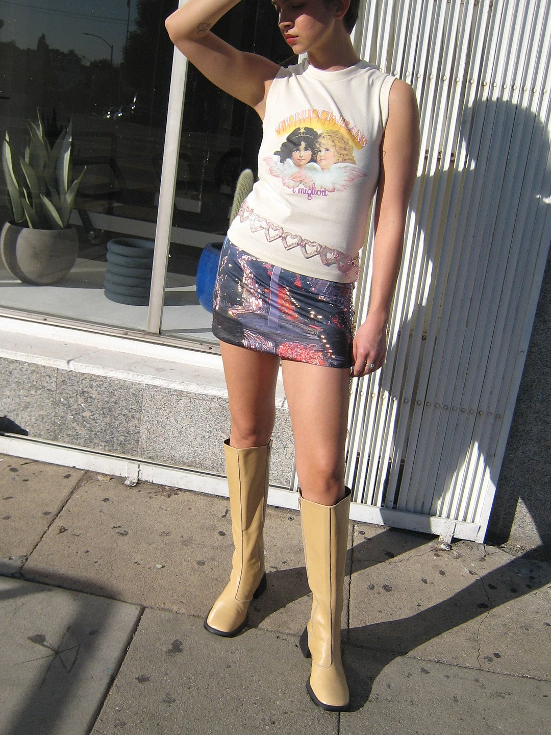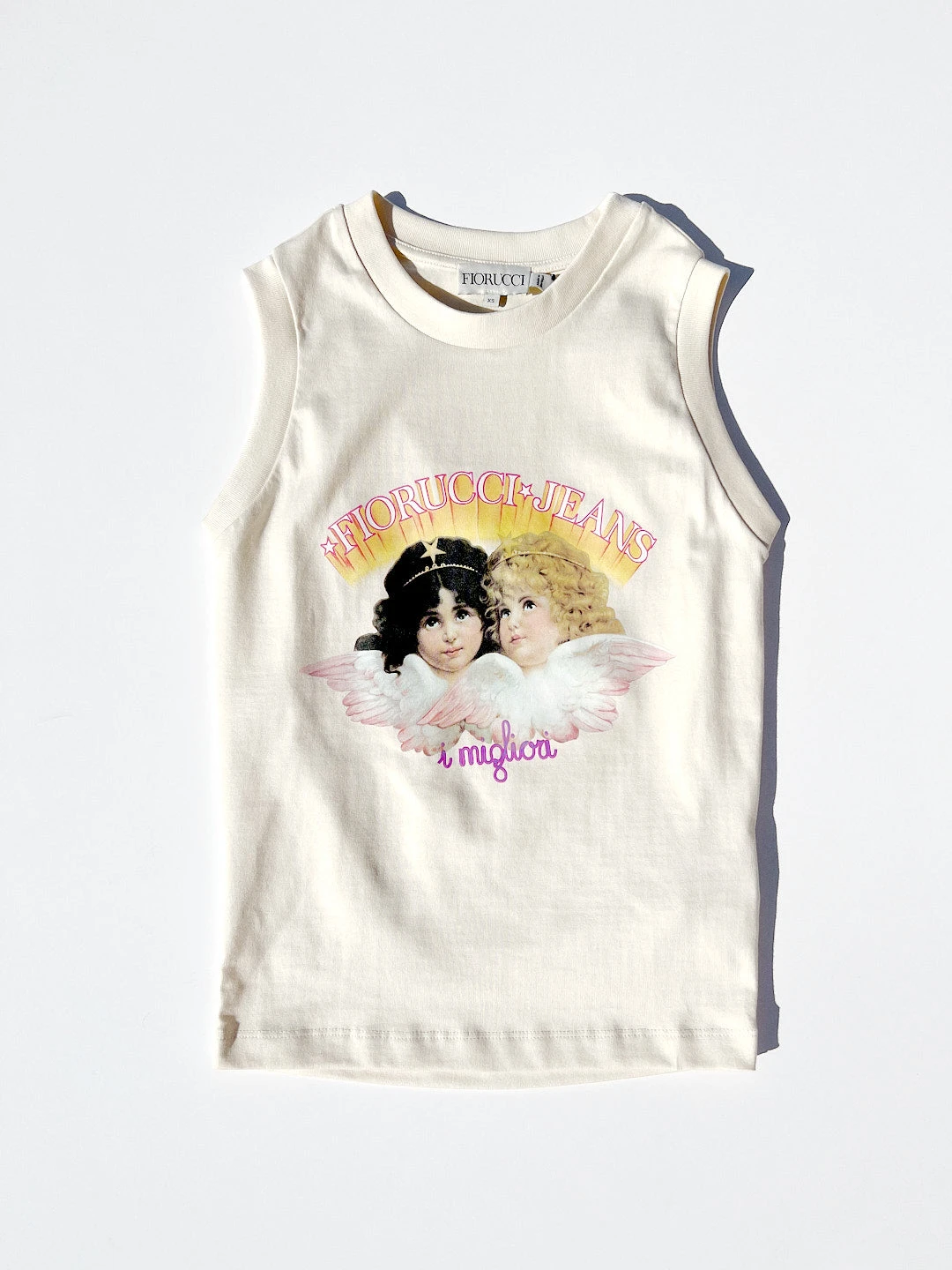 Iconic! Fiorucci’s famous angel print on a fitted ivory tank.
