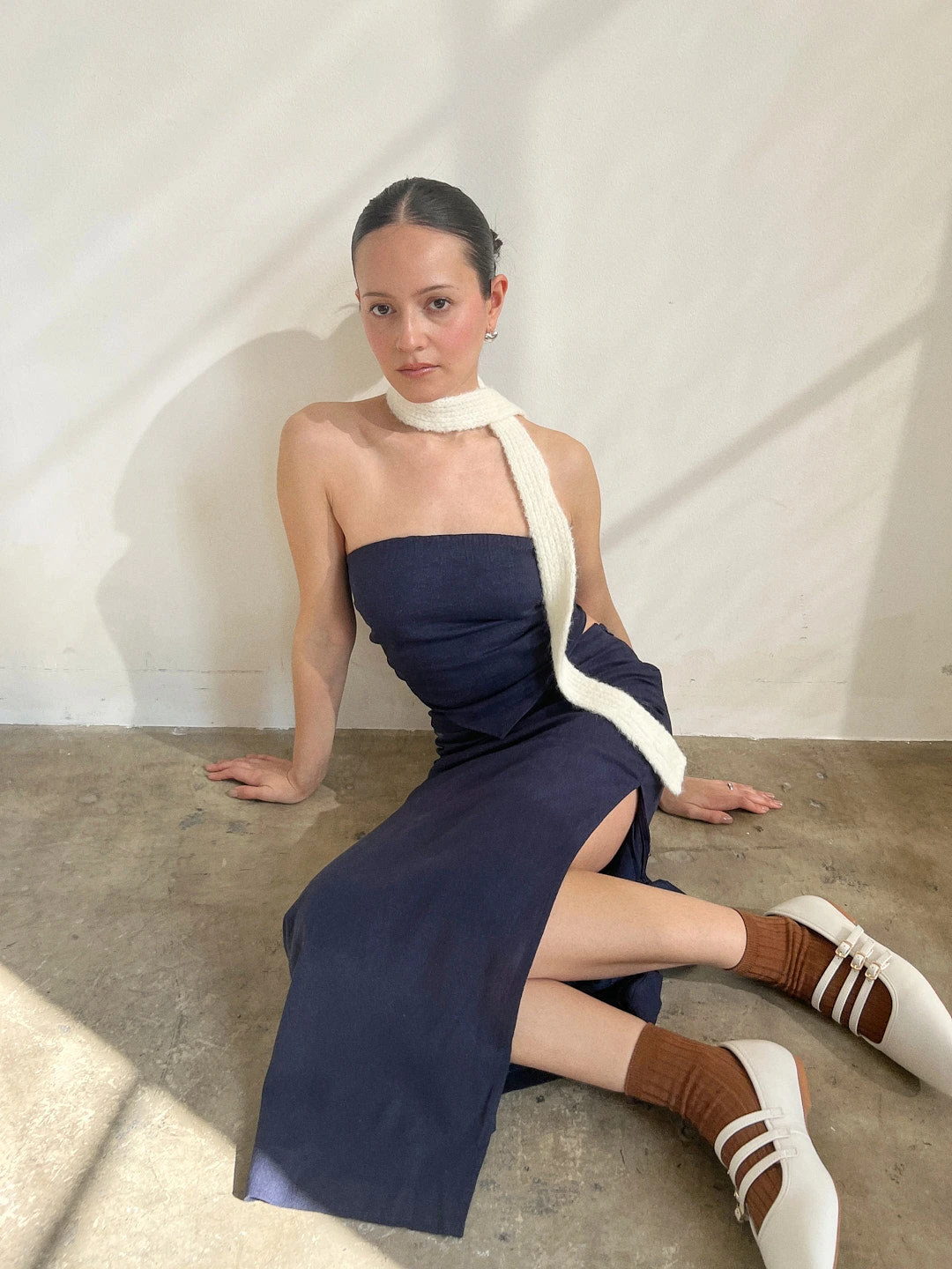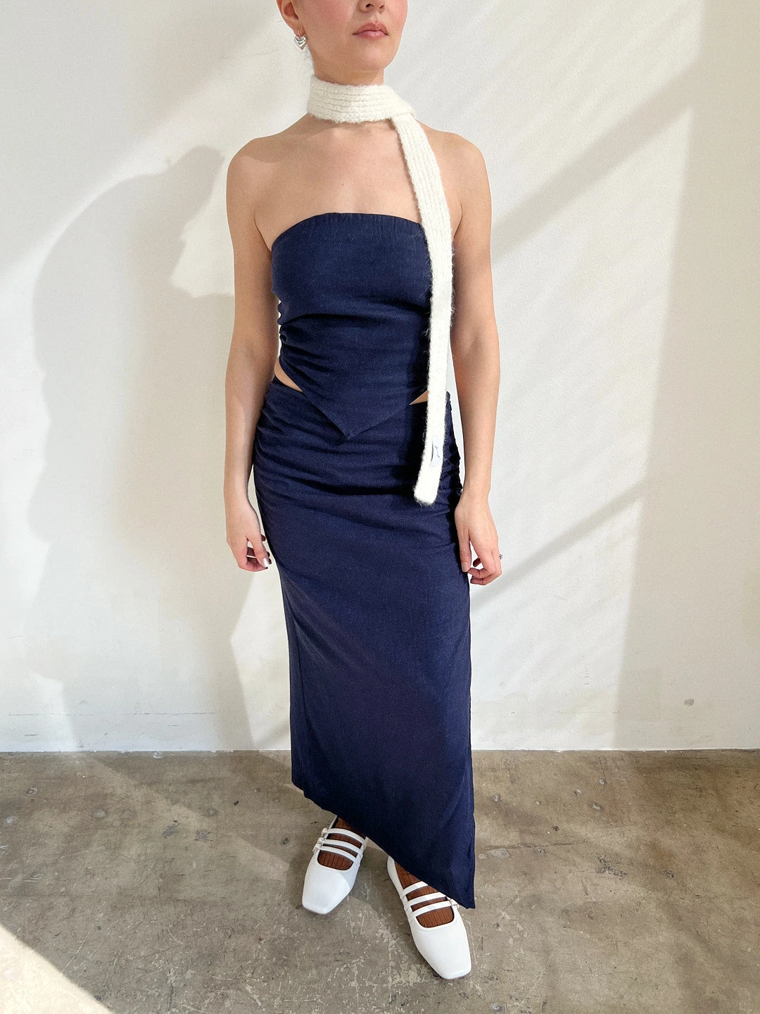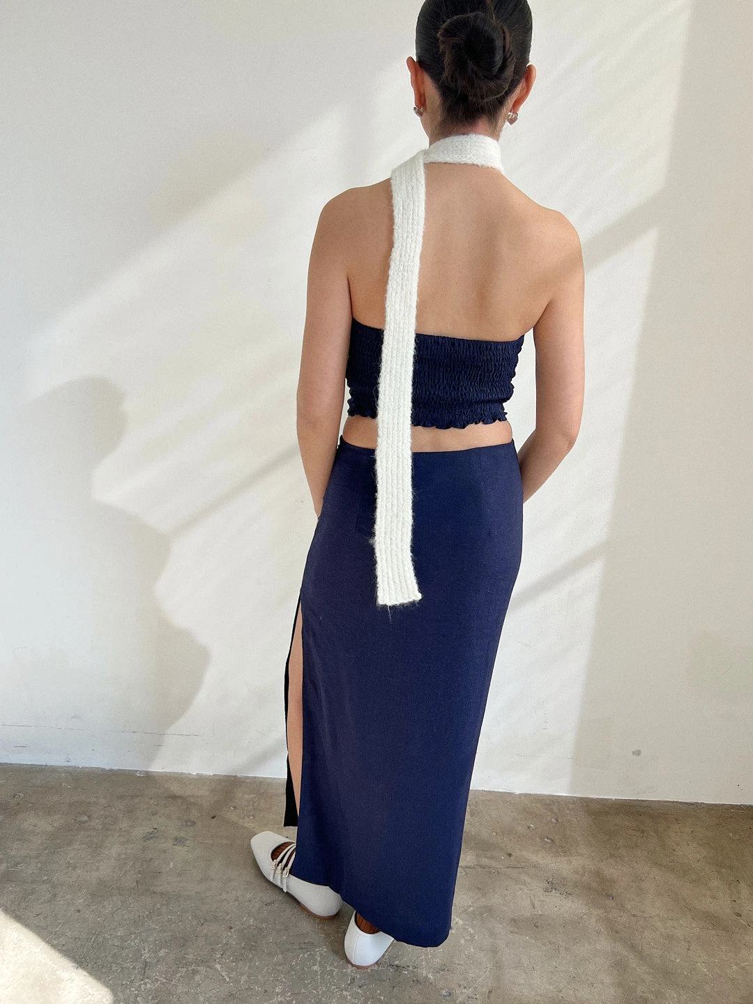Get ready to slay in style with this set featuring a white handkerchief top and a midi skirt with a smocked back and a dramatic side slit. Perfectly coordinated and oh-so-chic, this is a must-have for any fashionista!