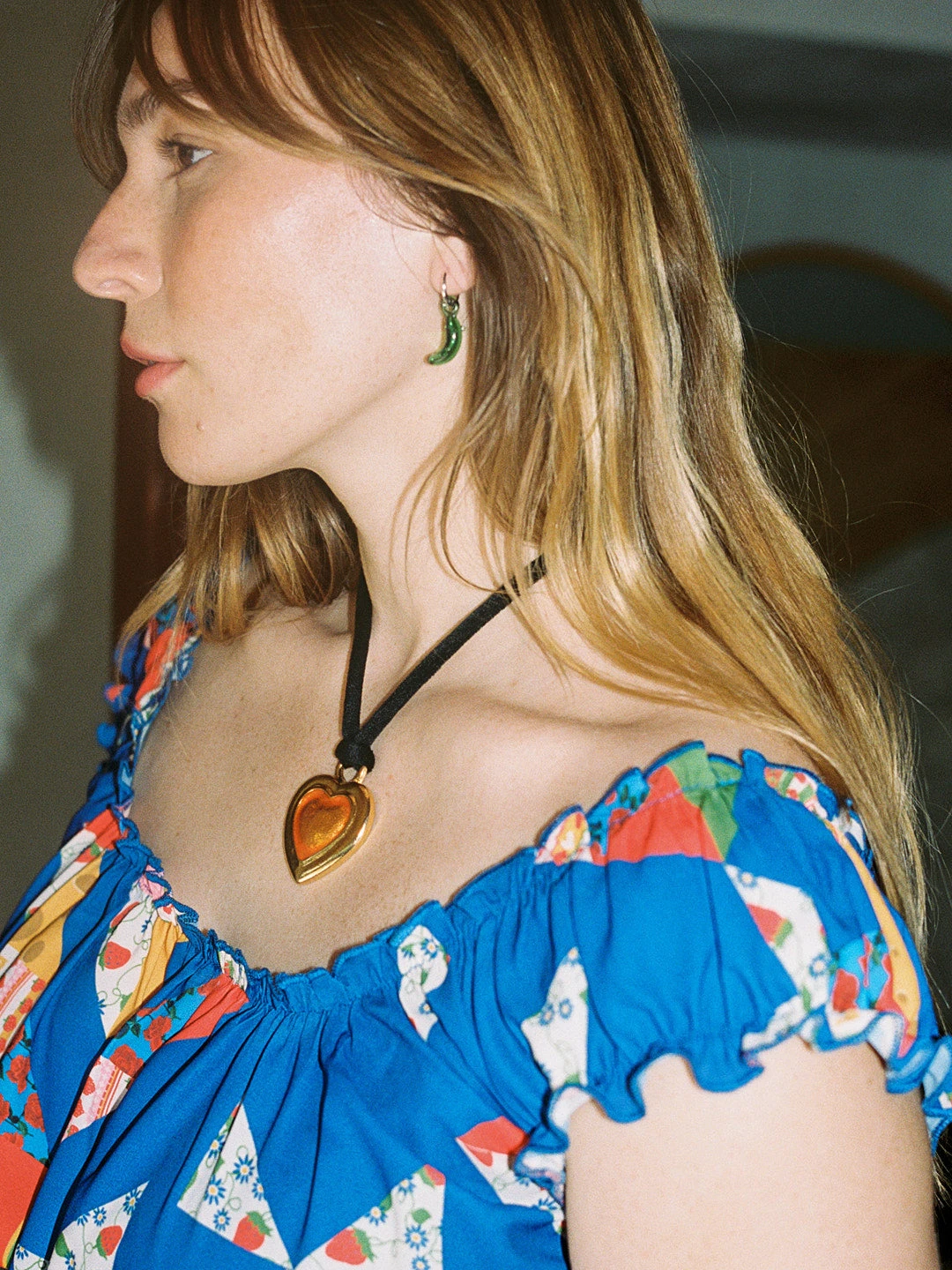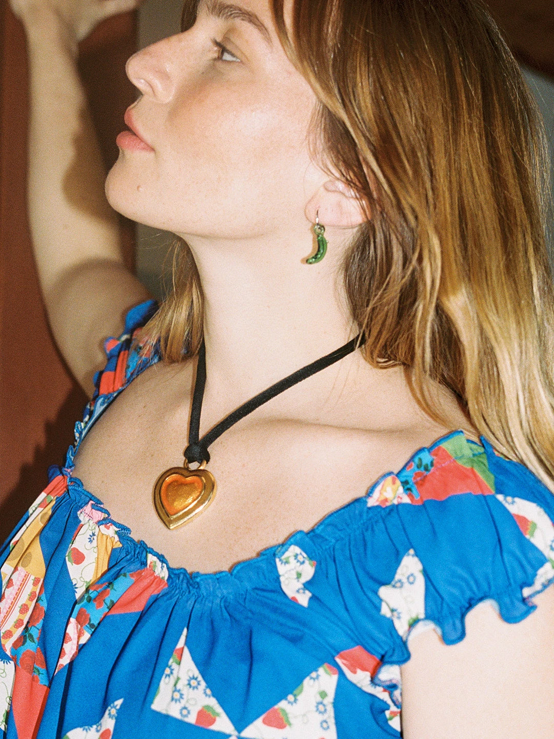 1/2″ gold plated brass hoops with 3/4″ handmade glass charms. Nickel free.