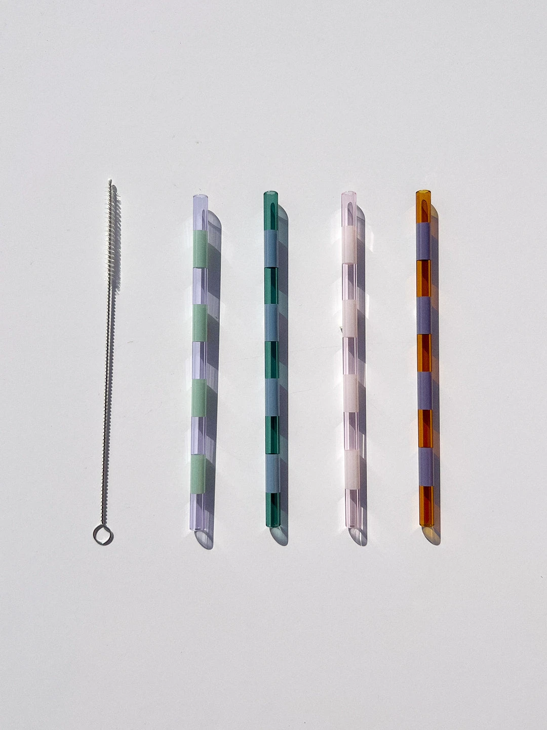 Set of four handmade glass straws featuring unique food-grade decals.
