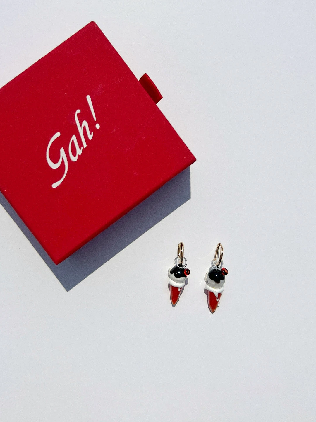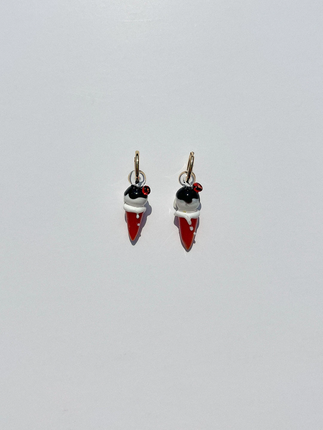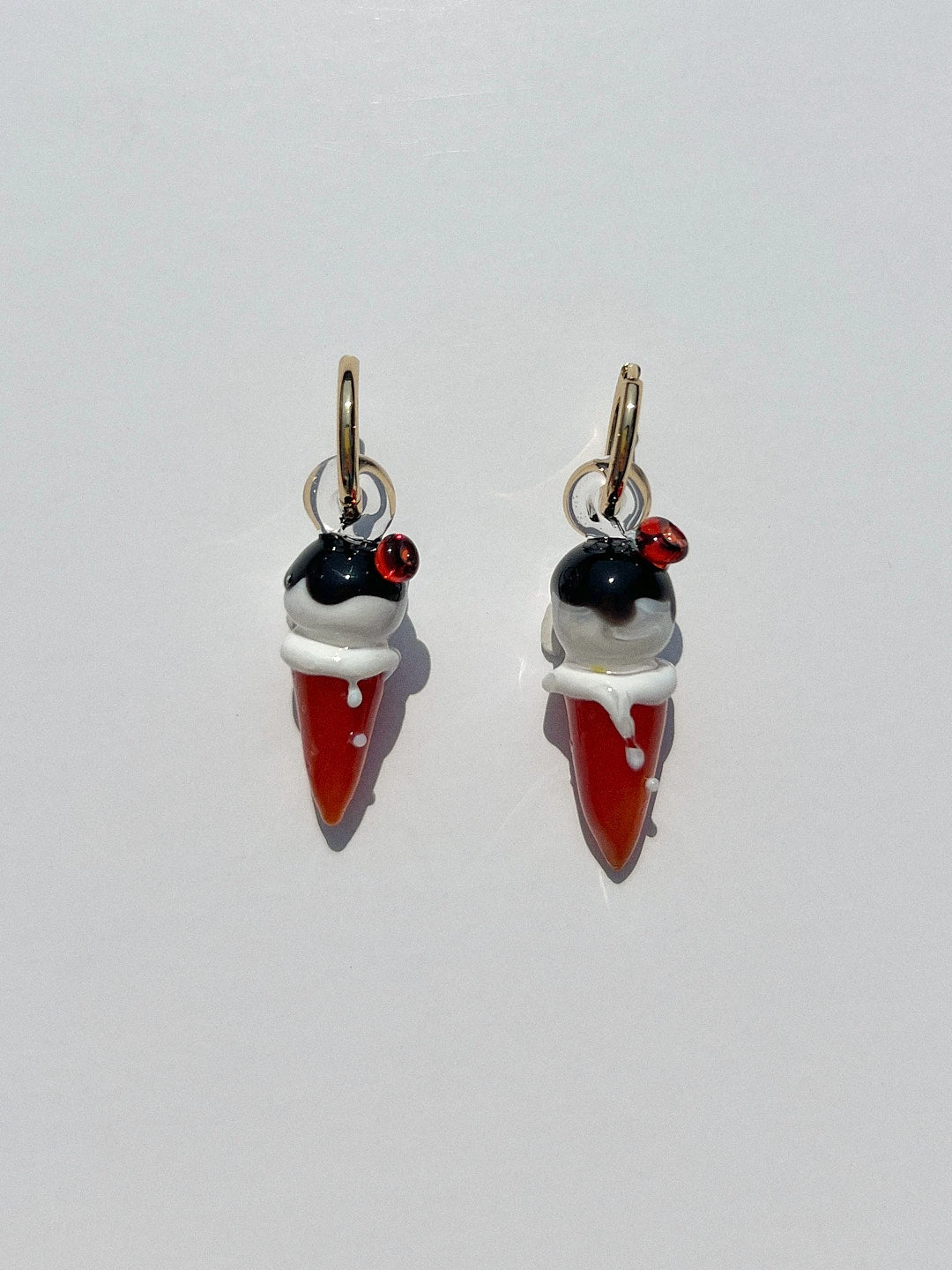 🍦Food for your ears! The most adorable handmade glass charm ice cream sundae cone earrings on gold plated hoops. Sold as a set of two.