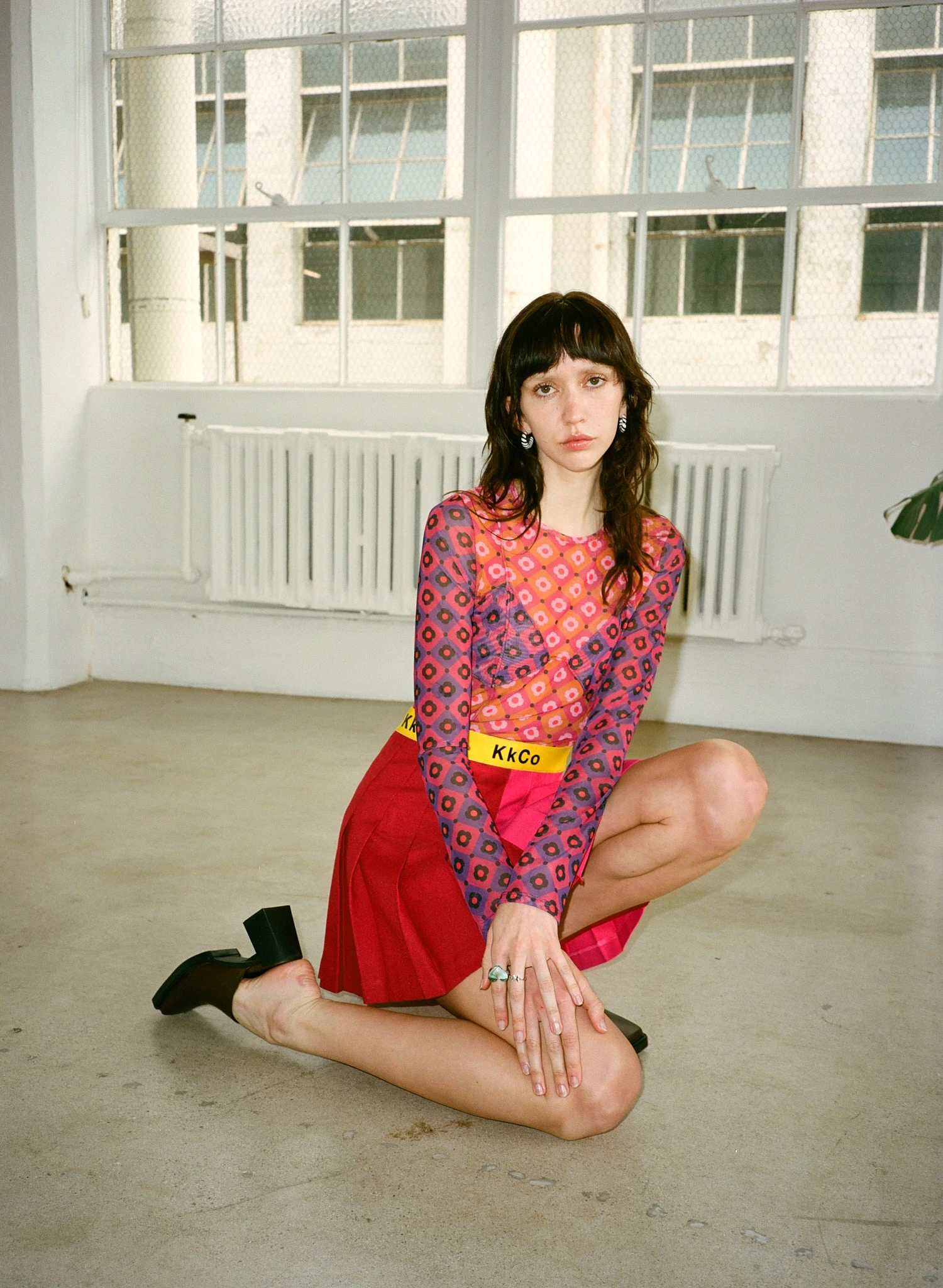Rabot’s Sur Top is a sheer mesh floral-print top in shades of pink, red, orange and purple. Features trompe l’oeil bra stitching on the bodice.