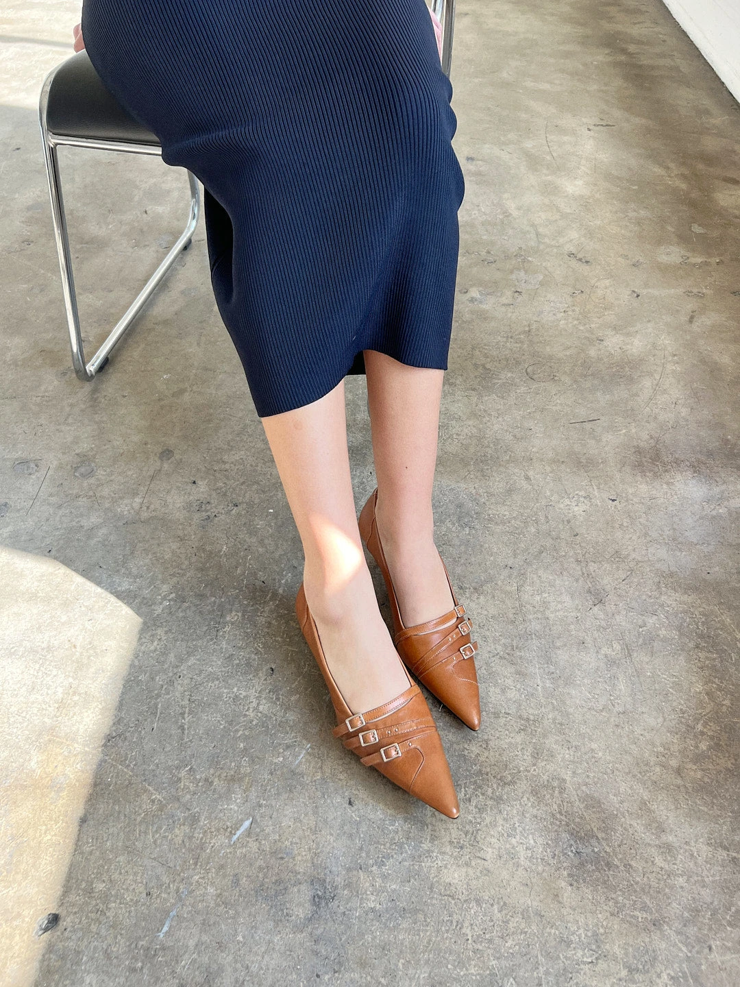 Add some pizzazz to your shoe collection with the Lykke Heel. Made of rich cognac brown leather, these heels feature sleek silver buckle embellishments and a pointed-toe design. Plus, with comfy leather insoles, you’ll be sure to turn heads with every step!