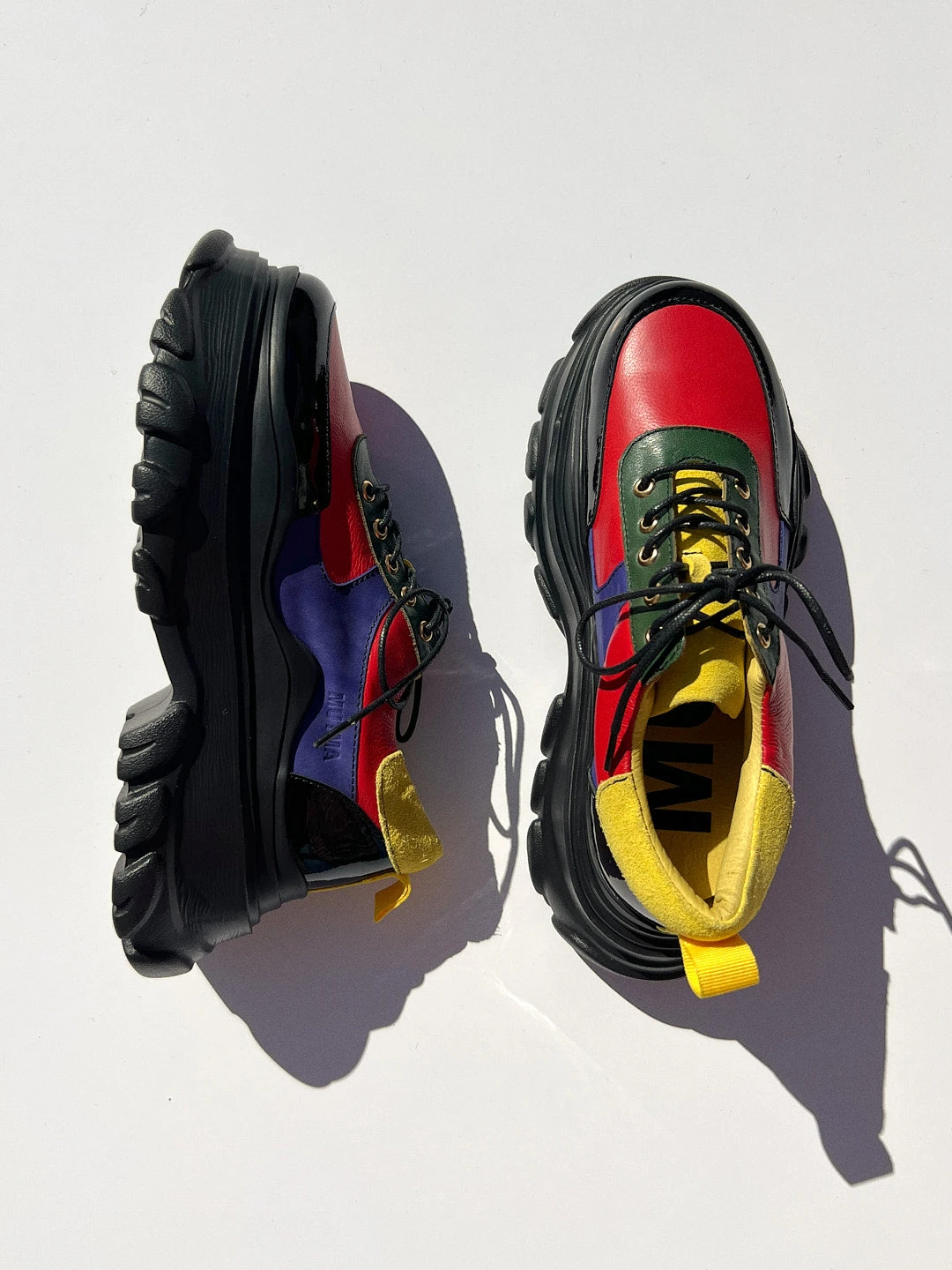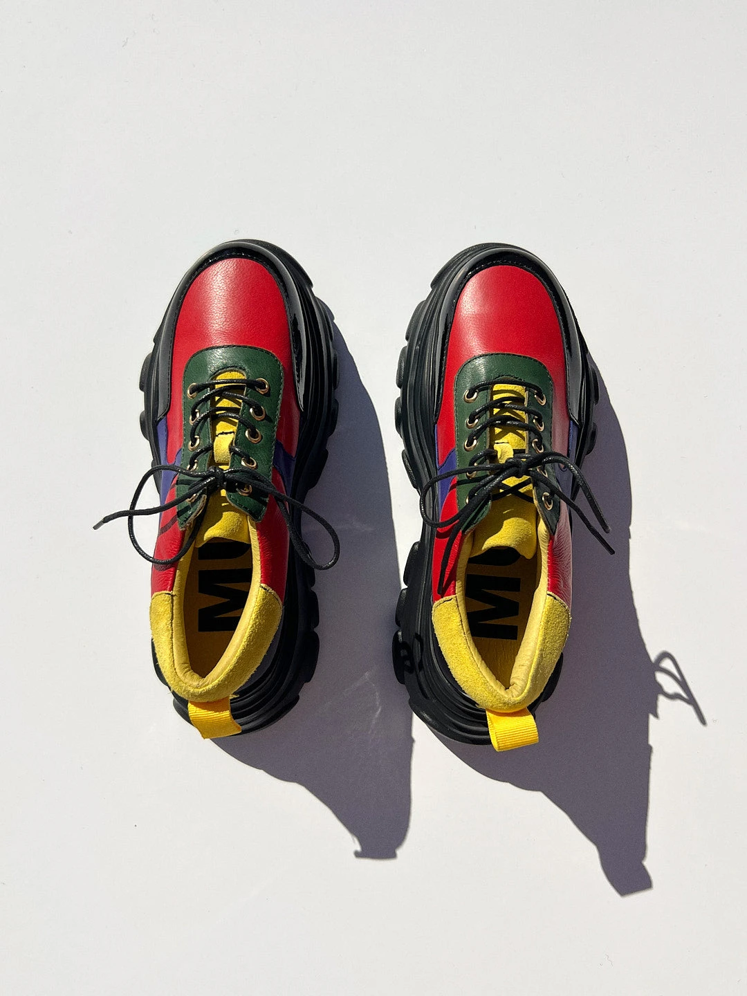 Multi-color lace up sneaker with a black chunky sole. Super lightweight and comfortable! Runs small, suggest to size up one size.